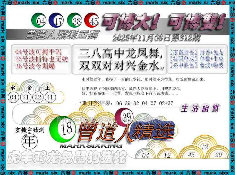 312期:男女二肖【女肖+鼠龙】开:龙14准